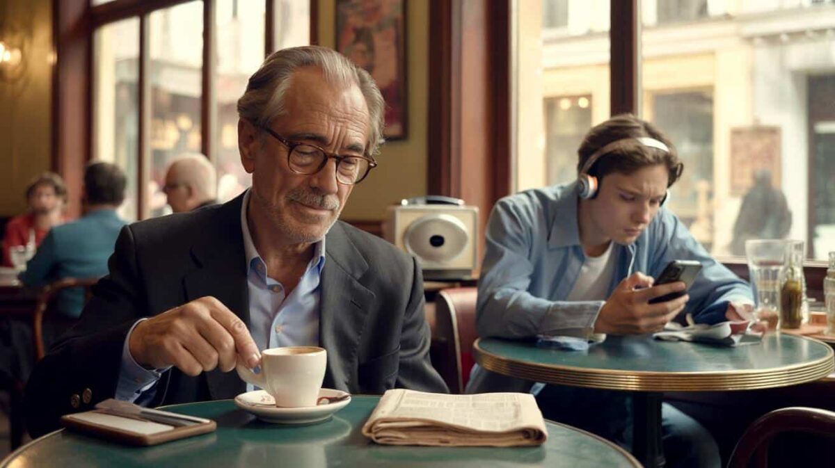 In een stil café aan de rand van de stad zit een man van ergens in de zeventig zijn koffie