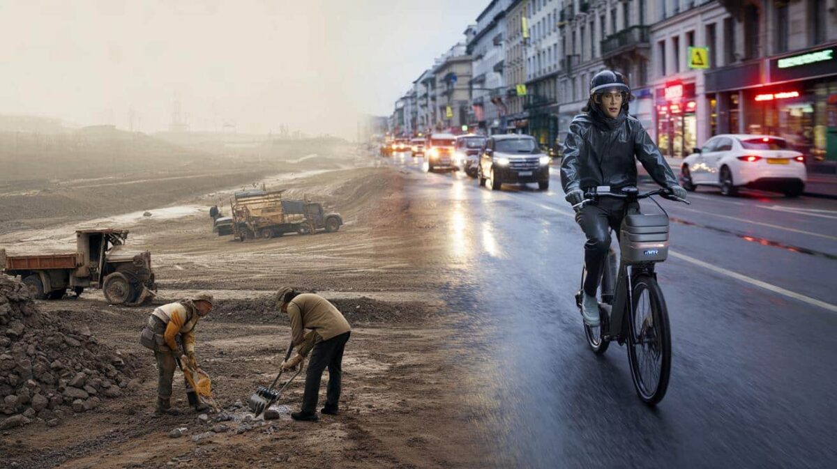 000 euro. Buiten tikt een miezerregen tegen het raam, binnen ruikt het naar koffie en nieuw rubber. “Hij is helemaal